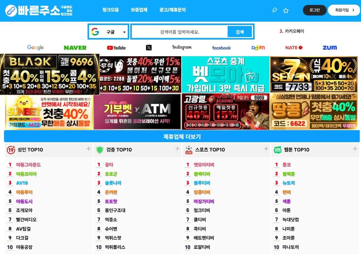 빠른주소 에서는 국내 모든 사이트들의 링크가 소개되어 있습니다. 주소가 자주 변경되는 사이트들의 최신 접속 경로를 손쉽게 안내하며, 특히 많은 사용자가 찾는 인기 사이트 3곳 (야동티비, 야동그라운드, 티비위키 ) 의 정확한 주소를 빠르게 안내합니다.