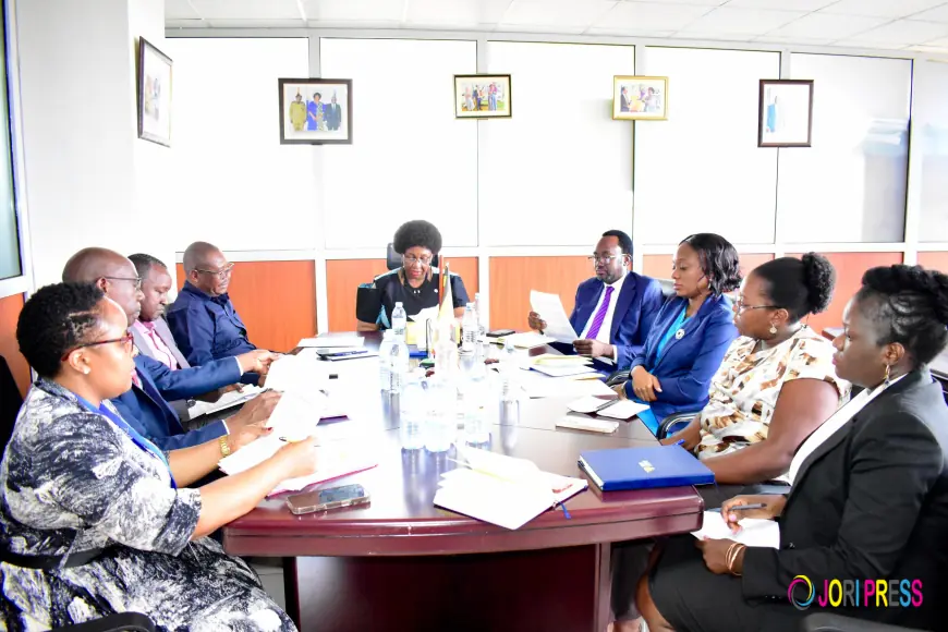 The Chairperson was flanked by Hon. Crispin Kaheru, Director Pauline Nansamba Mutumba, Ms. Diana Akampereza, and Mrs. Doreen Nabatte Mukunyu.